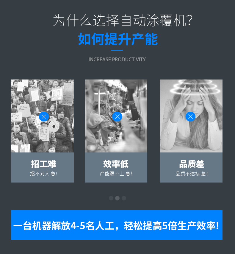 低成本:節(jié)約人工,一條線只需要1個(gè)人,節(jié)約了防護(hù)膠紙等耗材成本和節(jié)約了貼和拆防護(hù)膠紙時(shí)間,大大降低了生產(chǎn)成本和提高了人工利用率。